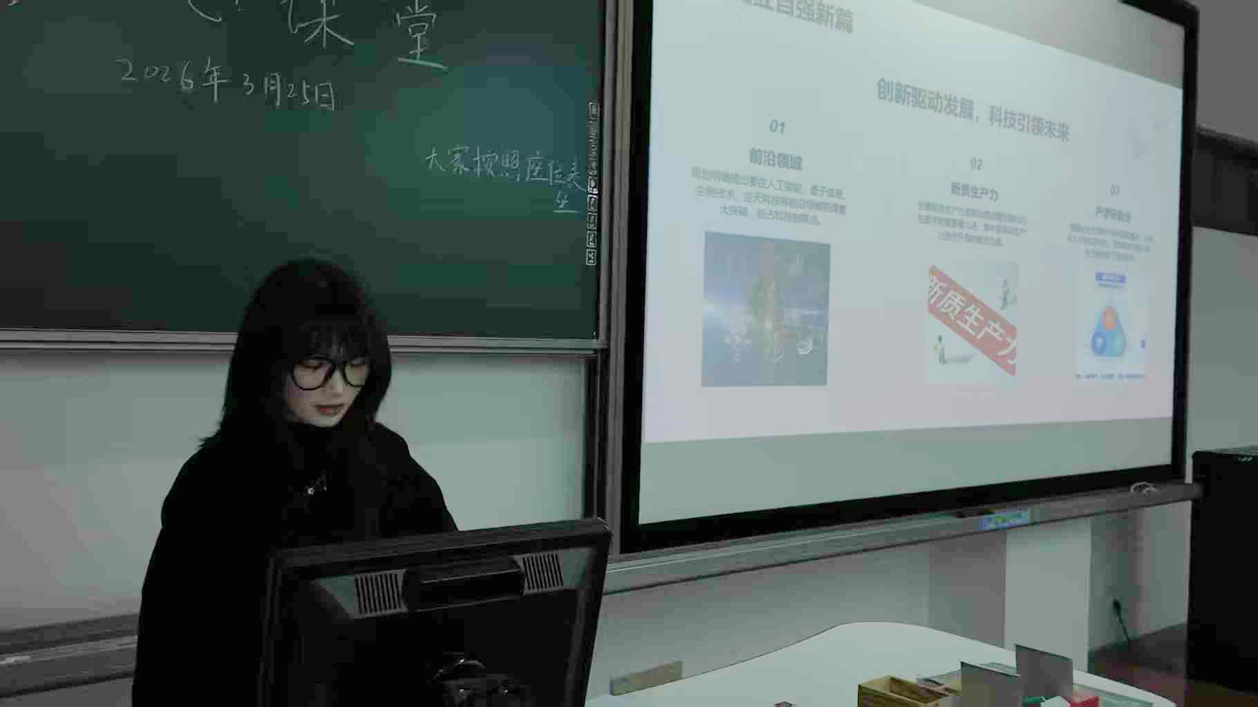 林国治同学以“红心向党学两会,青春奋进十五五”为主题,从智慧养老调研切入,阐释人民至上理念;解读二十届四中全会与2026年两会精神,明确“十五五”战略方向与智能经济等重点;设置互动问答深化认知;结合应用统计学专业,展现数据服务民生与智能经济的使命;以入党积极分子视角谈青春担当,发出勤学、力行、争先的倡议,号召青年以专业力量奔赴“十五五”新征程。