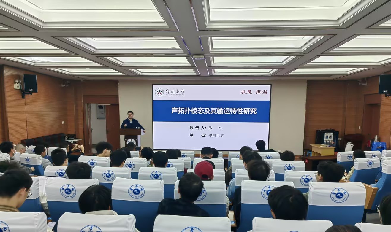 10月24日下午,我院优秀校友陈刚教授返回母校,为母校师生做题为《声拓扑棱态及其输运特性研究》的专题讲座,并从自己的科研成长之路出发,激励学弟学妹们在校期间要脚踏实地、刻苦钻研,勇攀科学高峰。副院长窦卫东主持讲座,百余名师生聆听讲座。