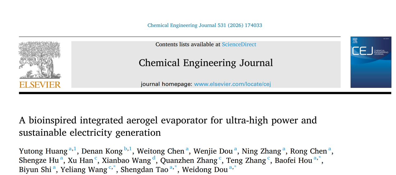 近日,学院窦卫东教授、青年教师侯保飞和陶圣旦联合北京理工大学王业亮教授以及湖北大学等研究人员在在国际权威期刊 Chemical Engineering Journal (中科院一区,IF:13.2) 上发表了一项最新突破性成果 。团队受自然界丝瓜蒸腾作用的启发,成功构建了一种集成式蒸发驱动水伏发电机 (I-EHVG) 。该器件实现了水伏器件输出功率的跨越式提升,为可持续水力发电技术开辟了新路径 。学院物理学专业2024级研究生黄宇通为该论文的第一作者,绍兴文理学院数理信息学院为第一完成单位。