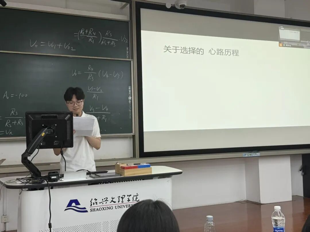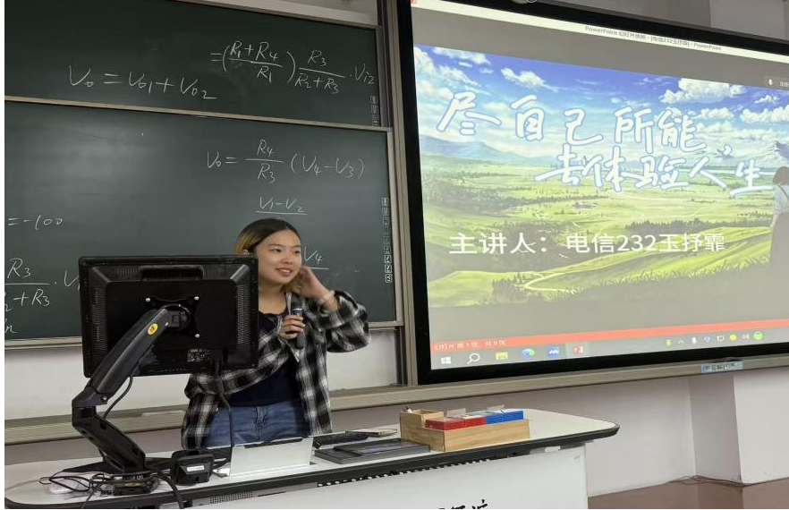接下来是来自电信232班玉抒霏学姐,她向我们讲述大学的经历,分为学习篇、竞赛篇与生活篇。其中在竞赛篇中与我们分享了许多自己储存的经验与方法,鼓励我们多多参与来巩固自己的知识。最后她呼吁我们应该平衡好自己的学业与生活,从而全面发展。