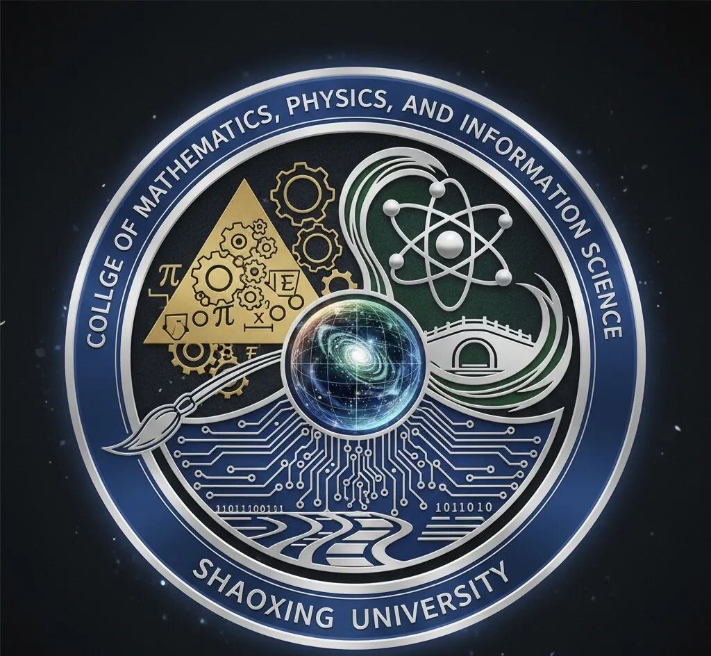 本院徽设计以“数绘匠心,理映华章”为核心主题,采用经典圆形构图体现学术的严谨性与完整性,主色调选用象征理性探索的科技蓝与代表智慧荣光的典雅金,凸显学院庄重而前瞻的气质。设计深度融合数学、物理、信息三大学科特色,并巧妙融入绍兴地域文化元素,通过Sigma(Σ)、Omega(Ω)、二进制代码、齿轮、枝叶等符号的有机整合,构建出一个凝聚学术精神、地域文脉与时代使命的视觉标识,传达学院“严谨治学、创新求真”的育人理念与面向未来的发展愿景。