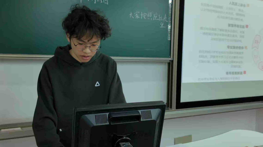 林国治同学以“红心向党学两会,青春奋进十五五”为主题,从智慧养老调研切入,阐释人民至上理念;解读二十届四中全会与2026年两会精神,明确“十五五”战略方向与智能经济等重点;设置互动问答深化认知;结合应用统计学专业,展现数据服务民生与智能经济的使命;以入党积极分子视角谈青春担当,发出勤学、力行、争先的倡议,号召青年以专业力量奔赴“十五五”新征程。
